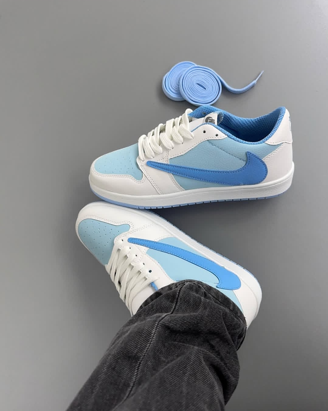 کتونی نایک ترویس بزرگپا رنگ سفید آبی جدید و ترند